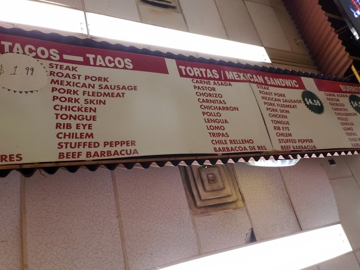 Chorizo meat taco garnished with chopped onions, cilantro, and served with a side of lime wedges along with red in house sauce and green avocado sauce. Choice of corn tortilla or flower.